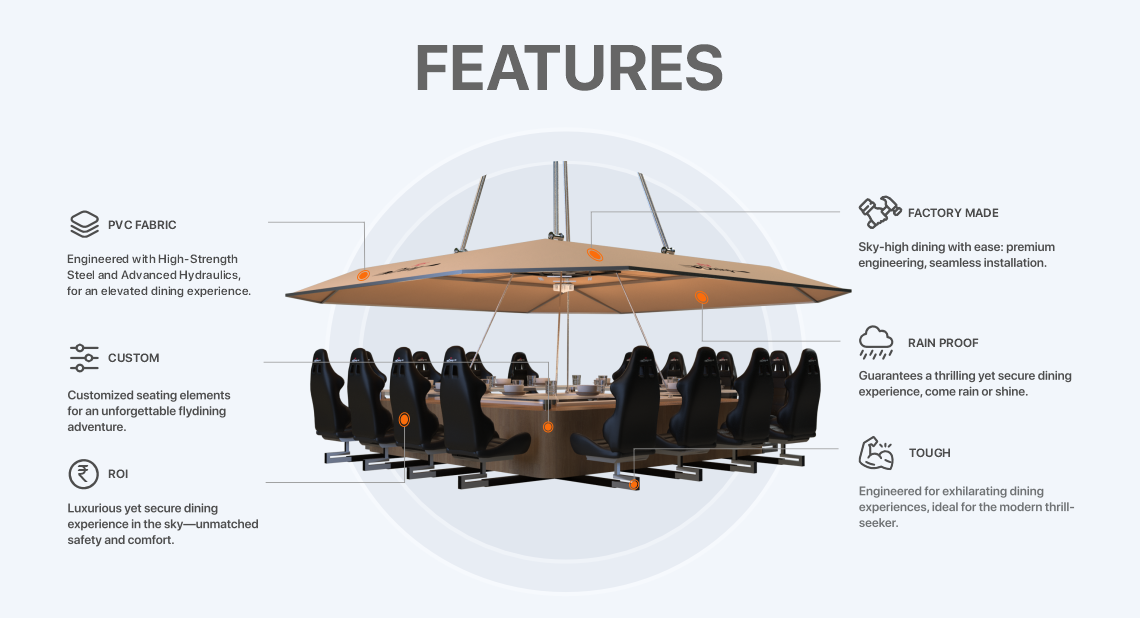 Savor the Heights of Culinary Excellence with FlyDining’s Apache 16—The Ultimate Sky-High Feast for the Spirited and Sophisticated. Masterfully engineered with cutting-edge technology and opulent materials, Apache 16 presents an unforgettable dining escapade that hovers between heaven and earth. Adhering to rigorous international safety standards, your well-being is our primary concern as you enjoy sumptuous meals amidst stunning vistas. Whether suspended over the hustle and bustle of city life or above tranquil waters, Apache 16 takes your dining adventure to new elevations, seamlessly blending exhilaration with elite refinement. Elevate your gastronomic journey with Apache 16, the intersection of luxury and thrills.